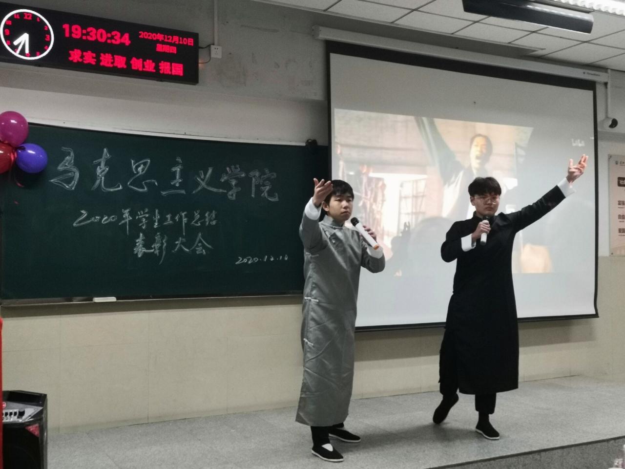 (通讯员 王晓彤)律回春渐,万象更新;艰难困苦,玉汝于成。12月10日晚7点,8827太阳集团官网在12教202室举行了2020年学生工作总结表彰大会。学院党委书记吴智勇、党委副书记马小佼、青年教师谭梦媛、学工办主任张云雾、辅导员李敏和学院全体在校学生参加了活动。