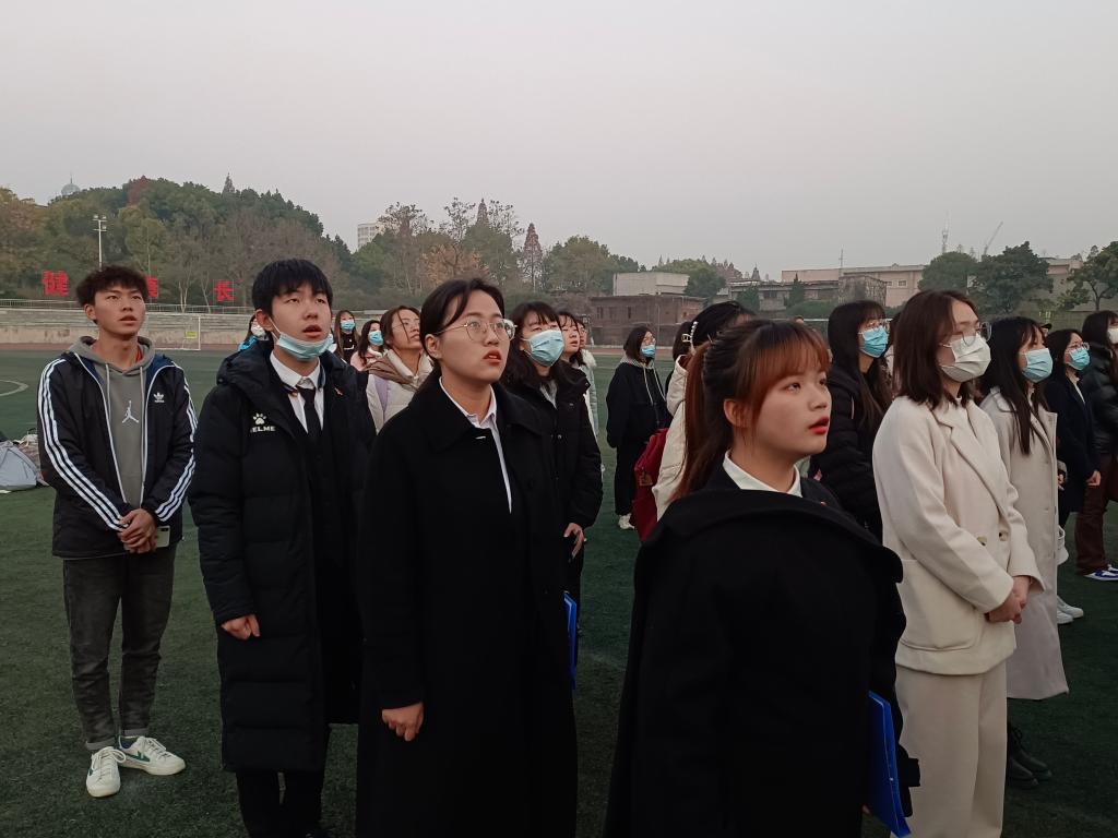 (通讯员 周芯如)12月6日早7时,8827太阳集团官网在东校区田径场举行“奋进新征程,走好赶考路”主题升旗仪式。学院党委书记刘小燕、党委副书记马小佼、副院长涂江波、学工办主任张云雾、辅导员李敏及全体同学参与本次活动。