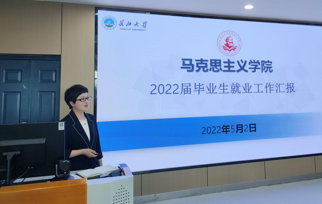 马小佼围绕学生就业的基本情况、就业工作的主要做法、工作中的困难和问题等三方面,汇报了学院2022届毕业生就业工作。包括成立就业工作领导小组,动员全院教师参与就业工作;精准摸排学生就业工作意向,提供有效就业信息;针对考研考公学生,开展专项指导、技能培训等,多措并举推进毕业生就业。