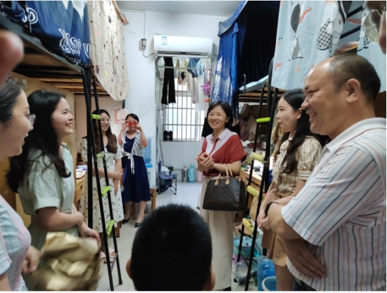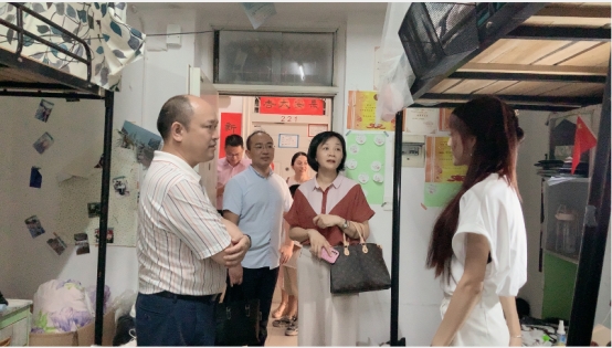 (通讯员:齐晓杭)2022届毕业生离校之际,学院党委书记刘小燕、院长姜学勤、副院长涂江波、院长助理李振华、班主任汤波兰与辅导员张云雾、李敏老师共同走进寝室欢送毕业生。