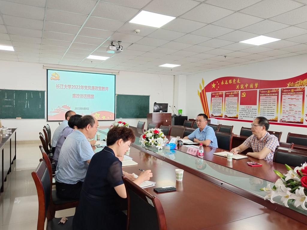 在学校党风廉政建设宣讲月活动深入开展之际,为落实全面从严治党监督责任,校党委书记王建平、校纪委副书记陈平中于9月9月上午来到8827太阳集团官网,对太阳官网全体班子成员开展了谈话提醒。