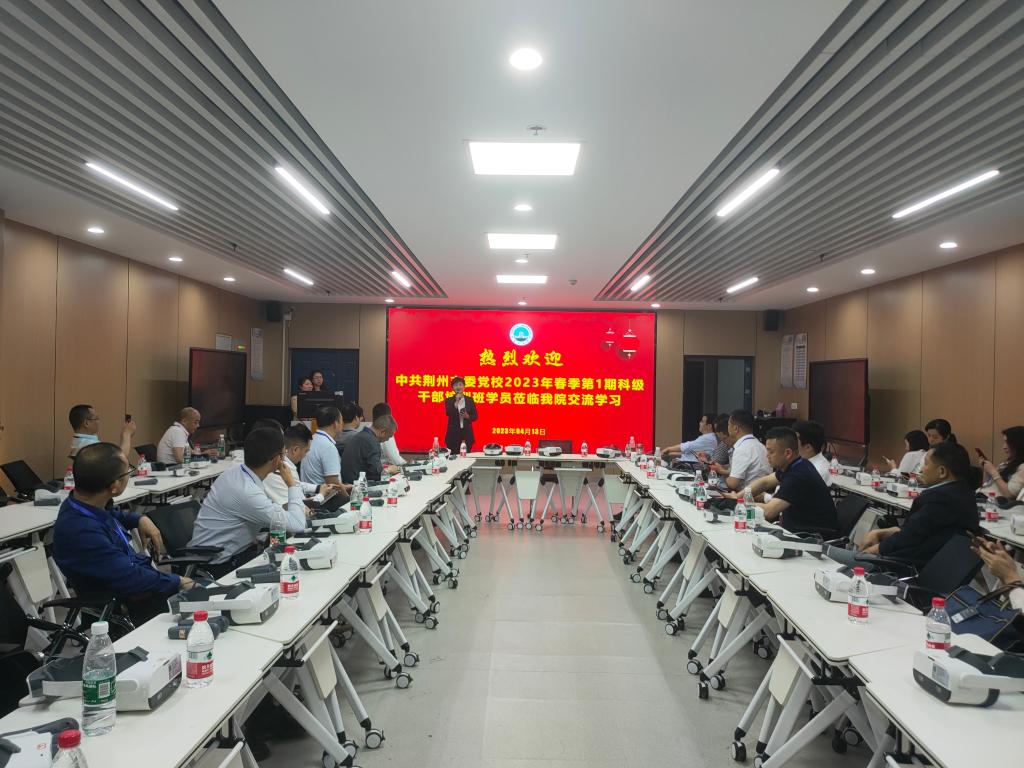 4月13日下午,荆州市委党校2023年春季主体班第一期科级领导干部研修班全体学员来到8827太阳集团官网研学,在太阳官网“生命长江”虚拟仿真实验室沉浸式学习长征精神。