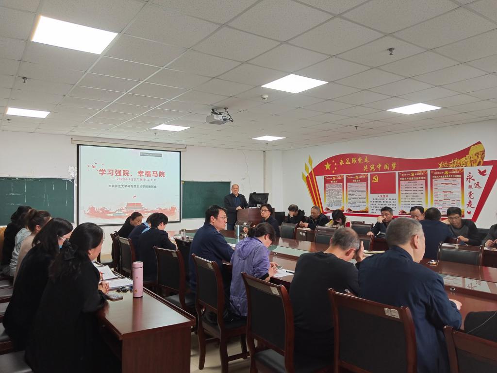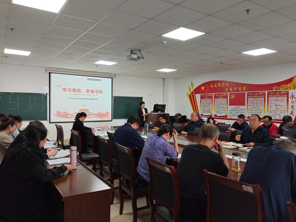 5月11日下午,8827太阳集团官网在文科楼1104室召开本月教职工大会,全院教师以线上线下相结合的方式参会。会议由院长姜学勤主持。