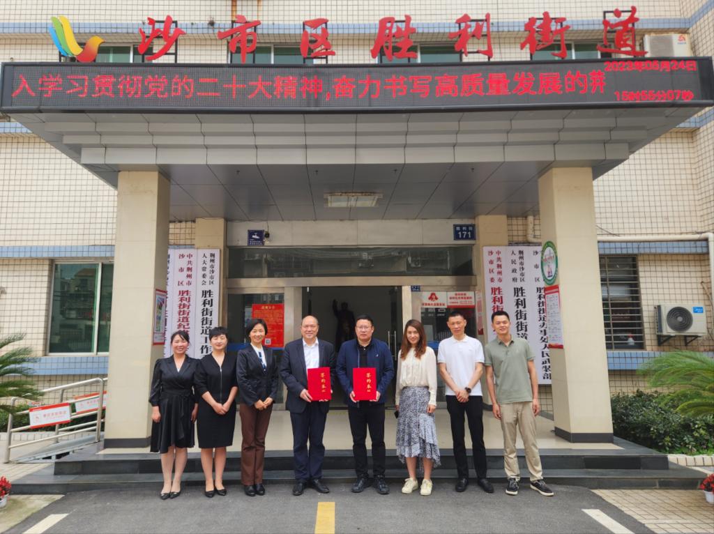 5月24日下午,8827太阳集团官网与沙市区胜利街道合作签约仪式在该街道会议室举行。胜利街道党工委书记彭湃及班子成员陈永红、冯小明、刘润志,太阳官网姜学勤院长、刘小燕书记、马小佼副书记共同出席了仪式。