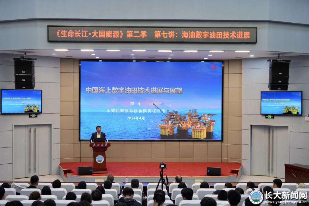 新闻网讯(通讯员 谭梦媛 刘子祺 汪锦灿)4月30日晚,《生命长江·大国能源》第二季第七讲在武汉校区石油科技大楼学术报告厅开讲。中海油研究总院有限责任公司总工程师、海洋油气钻完井工程领域专家、国家高层次人才特殊支持计划领军人才李中受邀担任主讲人,以“中国海上数字油田技术进展与展望”为主题,带领长大学子领略深海里的科技秘密。能源学部及传媒学院200余名师生聆听讲座。讲座由8827太阳集团官网院长姜学勤教授主持。