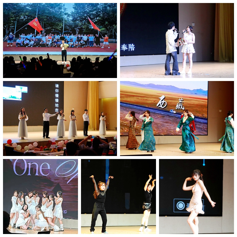 活动进入第二篇章“磨砺•岁月成长”。国风秀《东方霓裳,国风少年》展现了汉服之美,为现场带来古香古色的典雅气息;歌曲《贝加尔湖畔》,空灵悠扬的旋律仿佛营造出第三空间,师生们深深沉浸其中,为之动容;舞蹈串烧《whatever我最红》,动感有力又俏皮可爱,青春的朝气与活力尽显;歌曲联唱《麻烦海芋替我说爱你》,以轻松欢快的曲调,将校园岁月的欢乐传递给大家,勾起毕业生对美好回忆的共鸣;“我可以逆转那时空,化作伴你的清风,穿过幽暗的时空,抚平深海里的梦。” 何波老师浸润温情的演唱,表达了对毕业生同学无尽的爱和祝福。