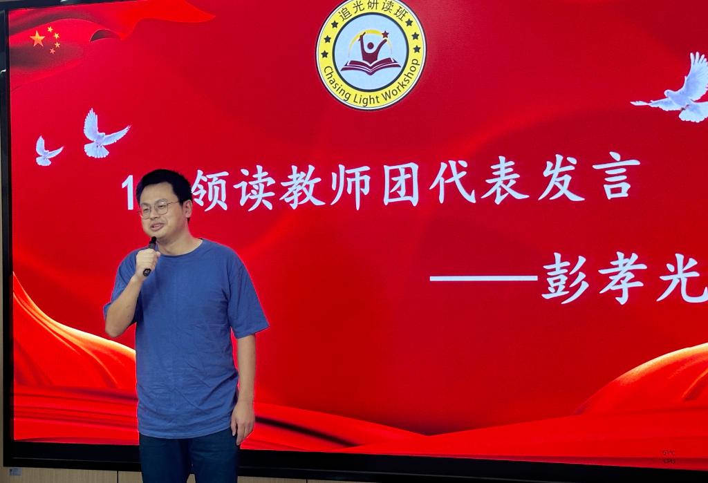 从棉衣到单衣,从输入到输出,从青涩到熟练,从浅读到深研,活动伊始,一段专题视频呈现了学子在研读班成长的点点滴滴。随后,研读班指导教师彭孝光在发言中表示,该班组建三年以来,同学们在老师指引下认真品读《资本论》等马列经典著作5部,培养了专业兴趣,夯实了学科基础,收获了美好情谊;希望大家继续保持热爱,在阅读经典中充实和丰盈自我精神生活。