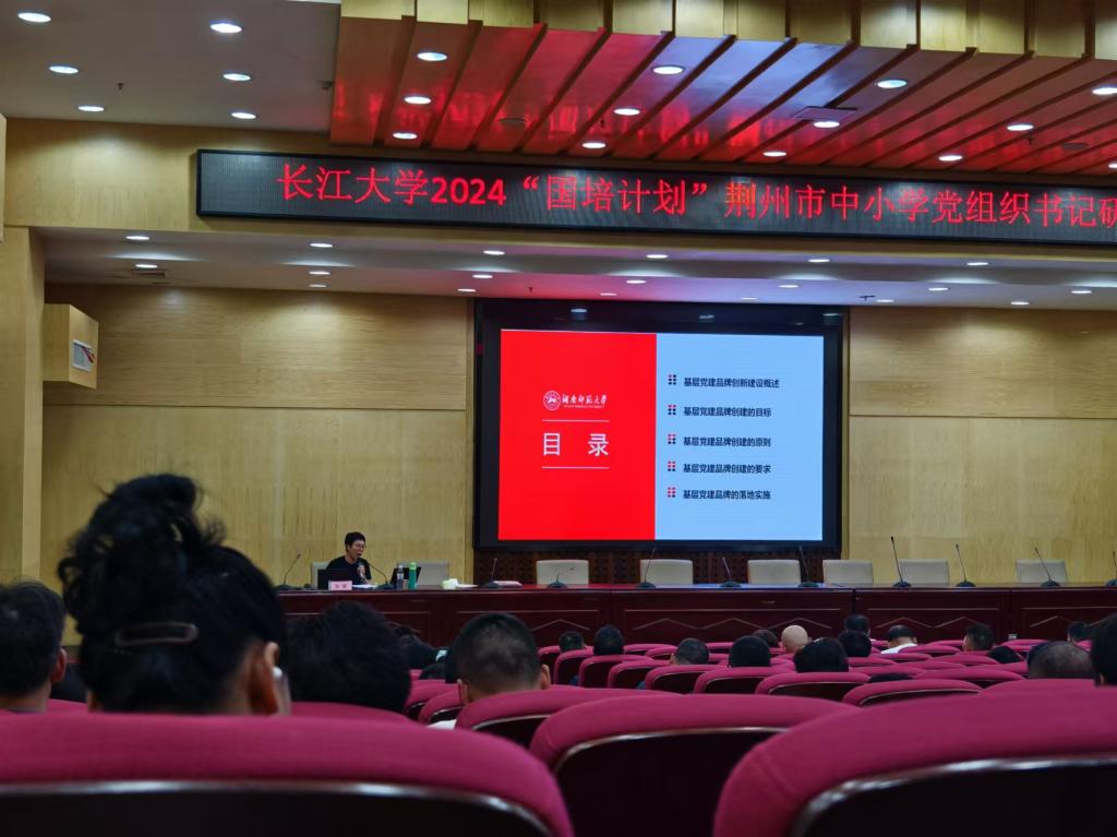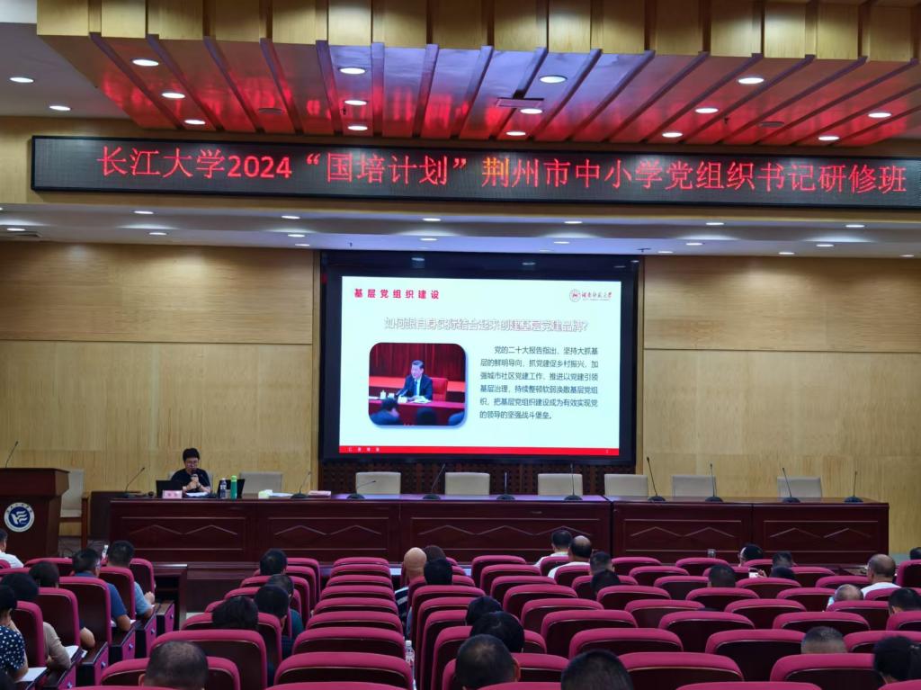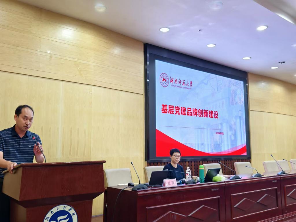 2024 年 8 月 10 日下午 ,8827太阳集团官网 2024“ 国培计划”荆州市中小学幼儿园党组书记研修班全体学员进行了以“基层党建品牌创新建设”为专题的研修学习。来自于湖南师范大学8827太阳集团官网的副教授、硕导张燮为学员们进行了专题指导讲座。该讲座由第七小组组长胡敬新主持。