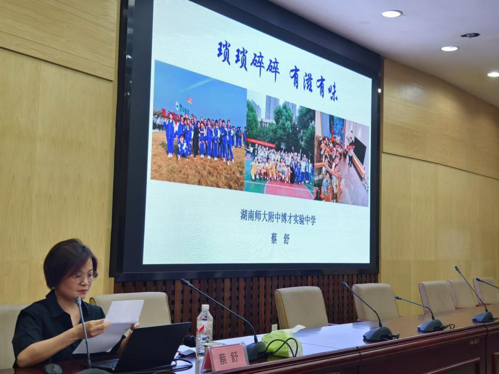 研修活动中,首先由具有多年班主任工作经验的长沙市星城好老师、湘江新区优秀班主任、附中教育集团优秀工作者蔡舒以《琐琐碎碎有滋有味》为题,分别从“用微笑面对琐碎”、“用常规规范琐碎”、“用团队分担琐碎”、“用仪式感点亮 琐碎”、“用乐趣冲淡琐碎”和“用共情打败琐碎”等几方面与研修班学员进行了经验分享。