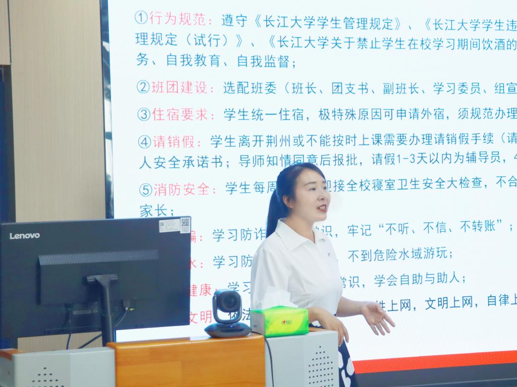 张云雾从办学历史、师资力量、育人品牌等方面介绍校史院情,同时对研究生日常管理相关规定作了细致解读,提示同学们尽快转换角色,科学做好规划,知悉并自觉遵守校纪院规,遇到困难及时与老师沟通交流。
