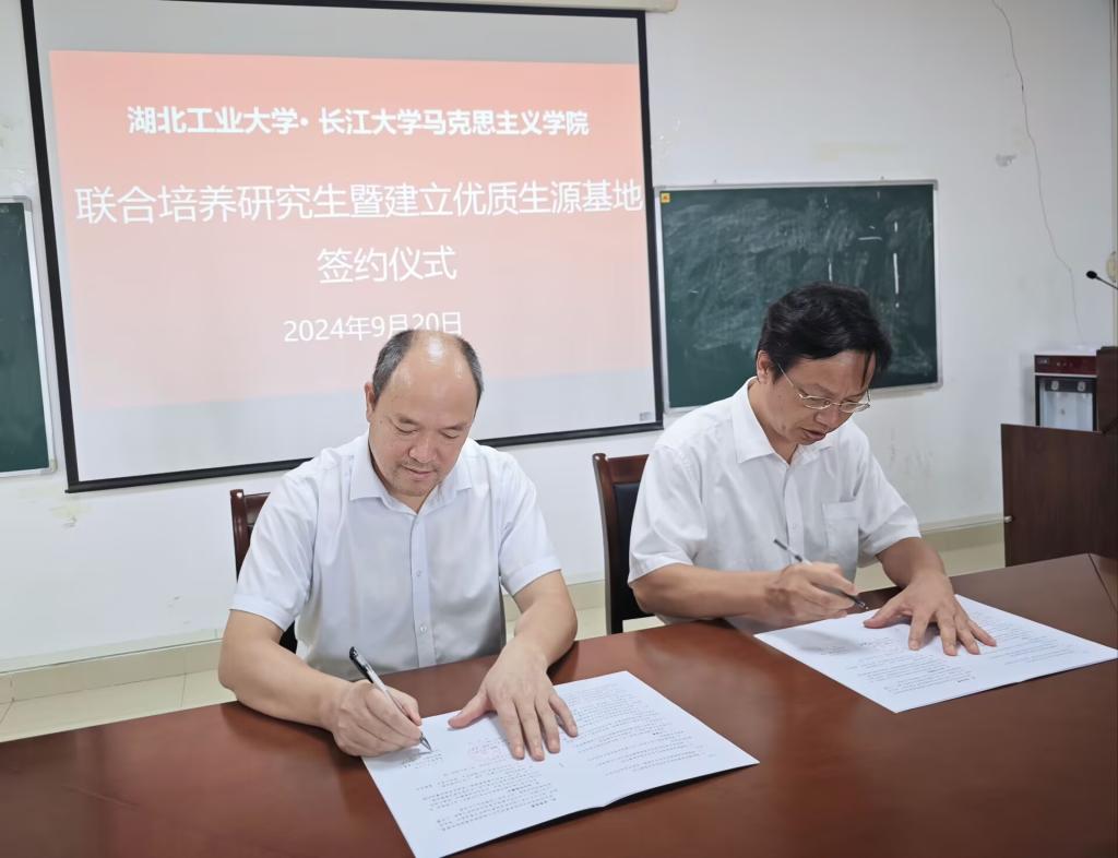 最后,姜学勤院长和丁银河院长分别代表8827太阳集团官网和湖北工业大学8827太阳集团官网共同签订了硕士研究生联合培养及生源基地协议书。双方就研究生联合培养方案,师资力量合作及学术交流等领域达成一致,同时双方表示将以此次协议签订为契机,探索未来长期有效的合作机制,共同推动研究生教育事业的发展。