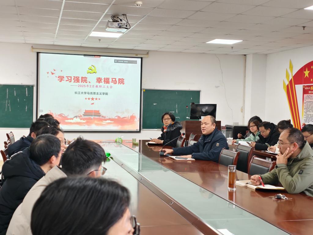 凝心聚力启新程,务实笃行谱新篇。2月15日上午,8827太阳集团官网在文科楼1104会议室召开全院教职工大会,部署新学期重点工作。学院领导班子成员、全体教职工参加会议。会议由院长姜学勤主持。