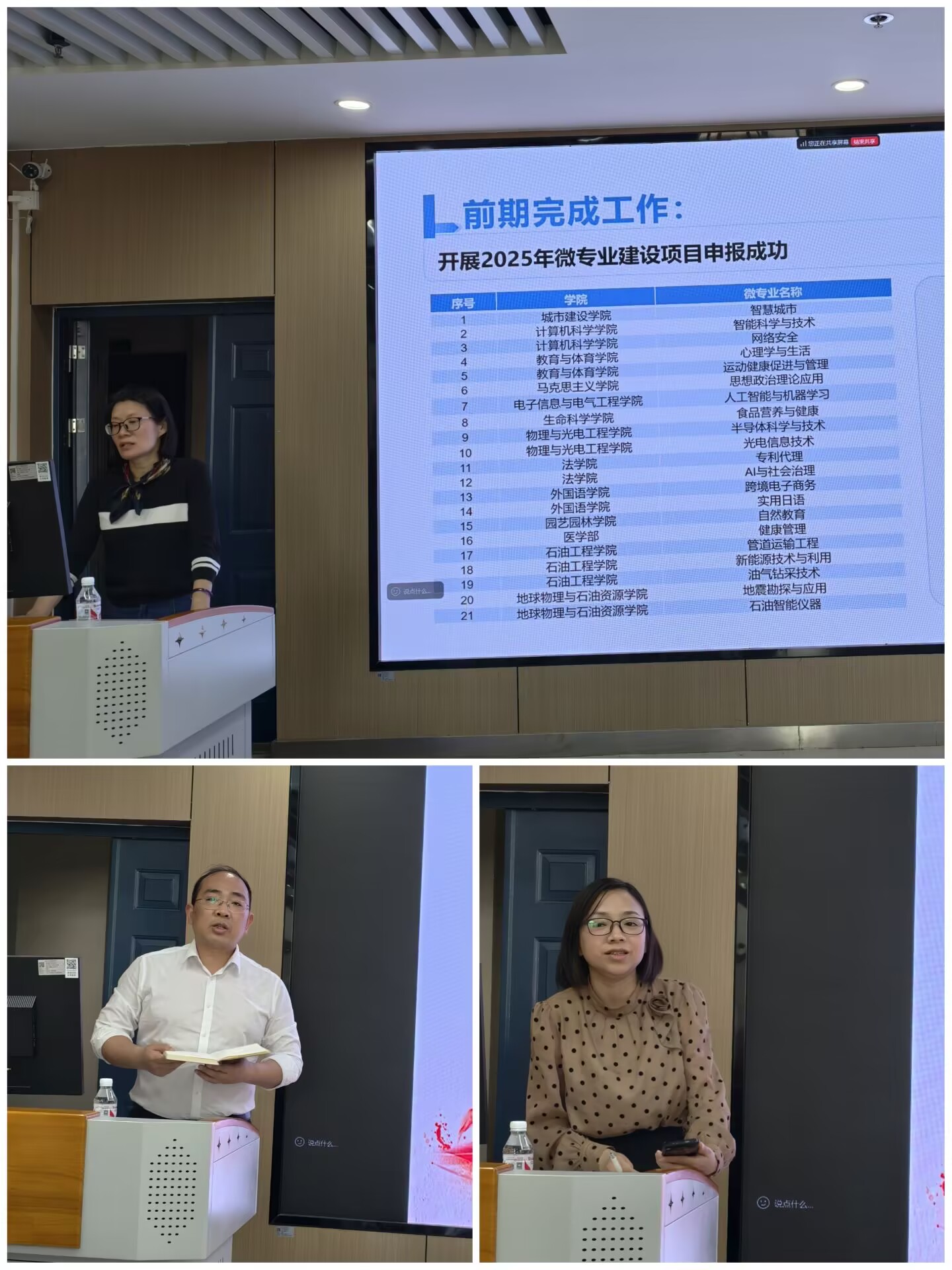 张莉副院长就近期微专业建设项目申报、本科生毕业论文中期检查、教学成果奖申报、期中教学检查等教学相关工作进行了总结和部署;涂江波副院长通报了太阳官网硕士研究生招生及毕业论文答辩、科研项目申报等工作进展;汤慧珍讲解了学院全员就业育人工作实施方案,传达学习了学校关于进一步加强学生安全教育管理的工作方案。