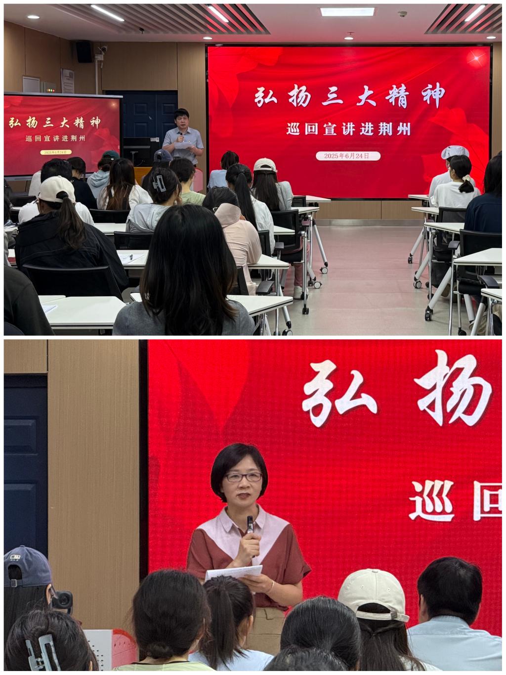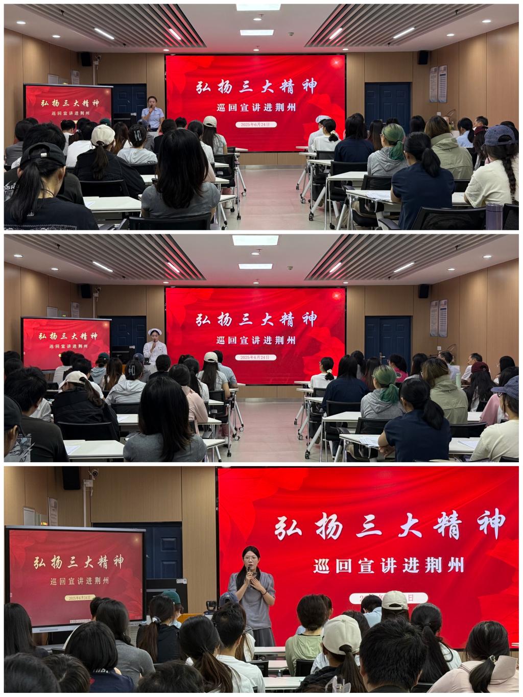弘扬大别山精神、抗洪精神、抗疫精神,传承和赓续红色血脉。6月24日,由省委宣传部、省委讲师团组建的巡回宣讲小分队走进荆州8827太阳集团官网马克思学院,面向师生开展弘扬“三大精神”(大别山精神、抗洪精神、抗疫精神)宣讲。