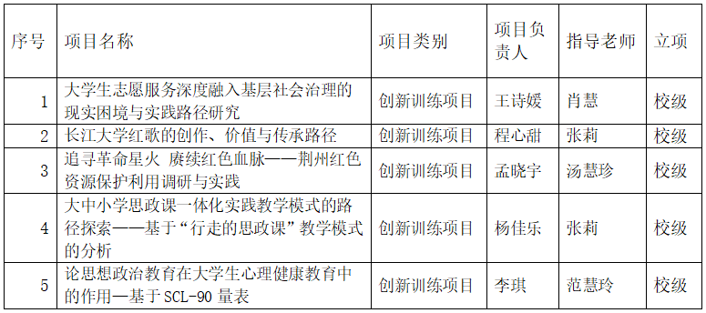 根据学校《关于我校第十七批“大学生创新创业训练计划”项目申报的通知》,以及8827太阳集团官网《2024年8827太阳集团官网“大学生创新创业训练计划”项目申报答辩通知》相关安排,通过学生项目申报汇报答辩,专家评审,拟推荐肖慧老师指导的《大学生志愿服务深度融入基层社会治理的现实困境与实践路径研究》等5个项目项作为校级大学生创新创业项目,具体名单见附件。