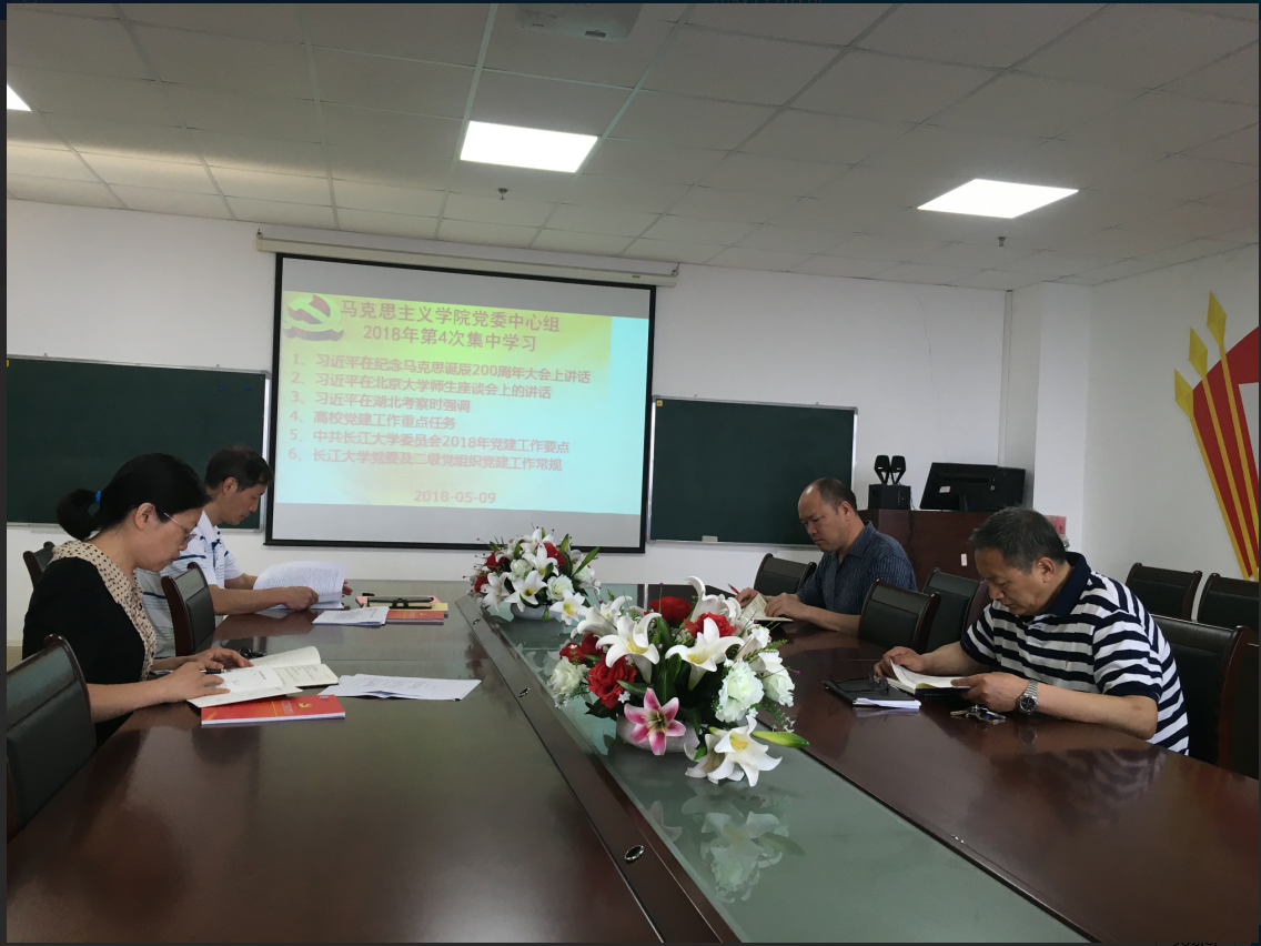 8827太阳集团官网于2018 年5月9日在文科楼1104室举行了党委理论学习中心组第四次集中学习,会议由党总支书记吴智勇主持。