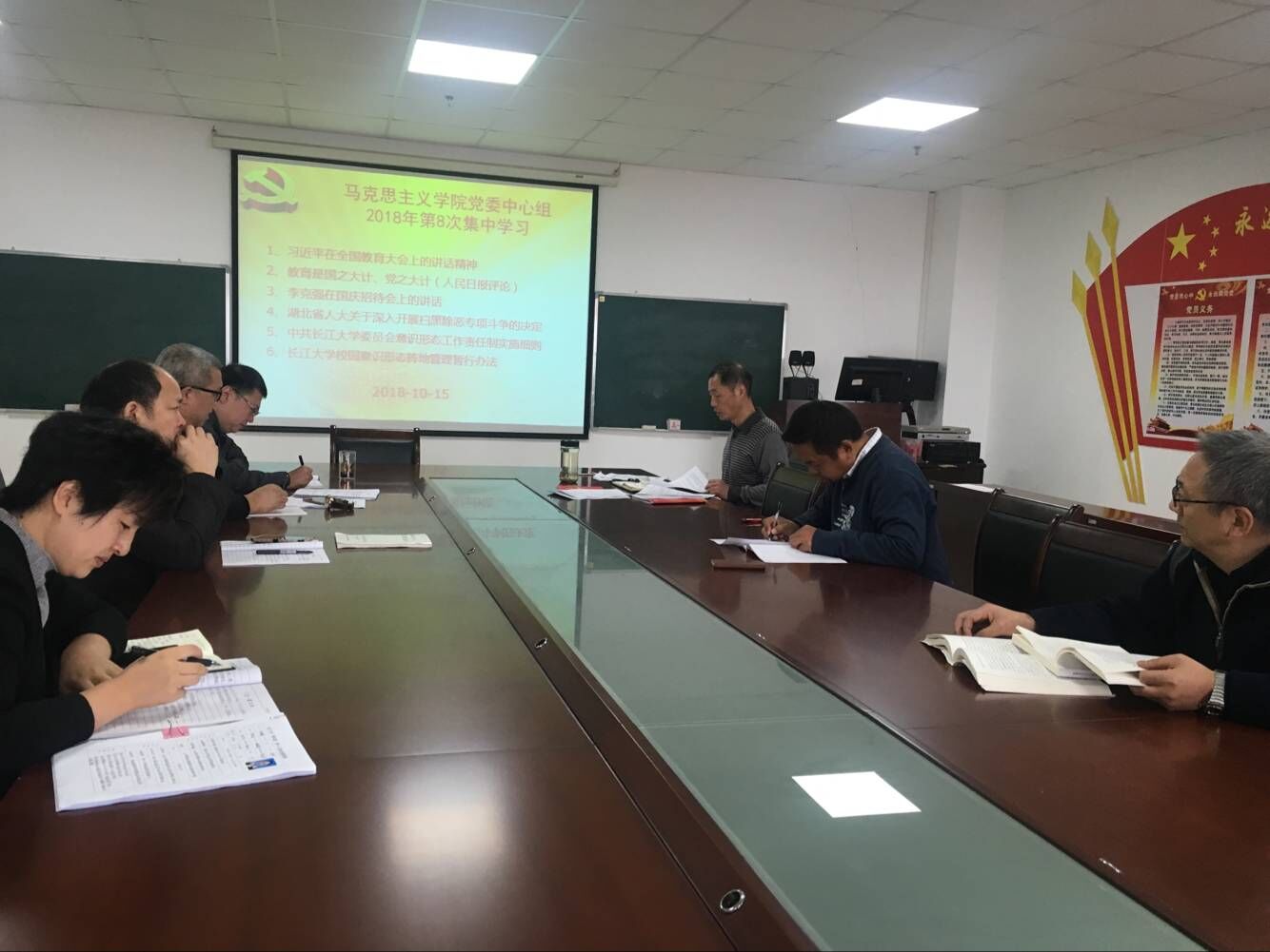 8827太阳集团官网于2018年10月15日在文科楼1104室举行了党委理论学习中心组第八次集中学习,党委理论中心组成员及各支部书记参加了学习会,会议由党总支书记吴智勇主持。