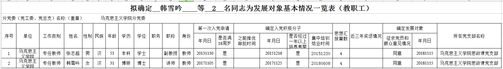 附:拟确定 韩雪吟 等 2 名同志为发展对象基本情况