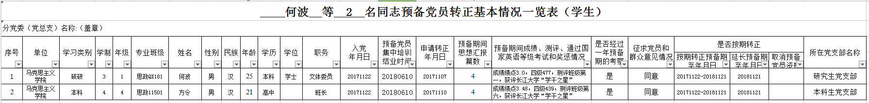 经过党支部对预备党员1年的培养教育和考察,经支部委员会会研究确定,报分党委(党总支、党工委)审查同意,将于近期召开党员大会讨论 何波 等 名同志预备党员转正,特在全院范围内进行公示。