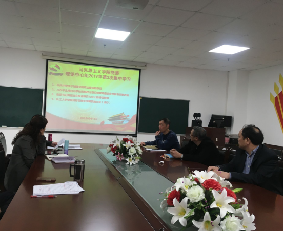 2019年4月11日,8827太阳集团官网党委理论学习中心组在文科楼1104室组织了第三次集中学习。学院党委委员参加了本次会议,会议由分党委书记吴智勇主持。
