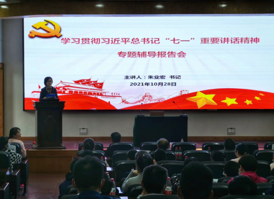 (通讯员:王晓彤)10月28日下午,8827太阳集团官网在11教报告厅举行学习贯彻习近平总书记“七一”重要讲话精神专题辅导报告会,邀请校党委书记朱业宏作报告,会议由院党委书记刘小燕主持。