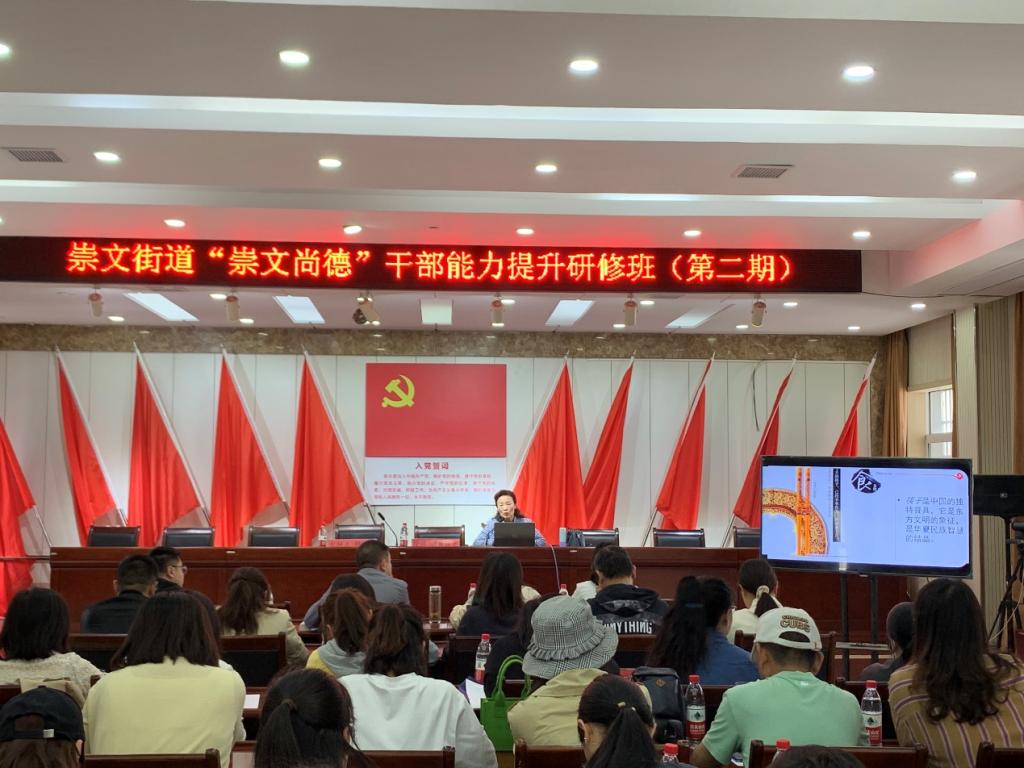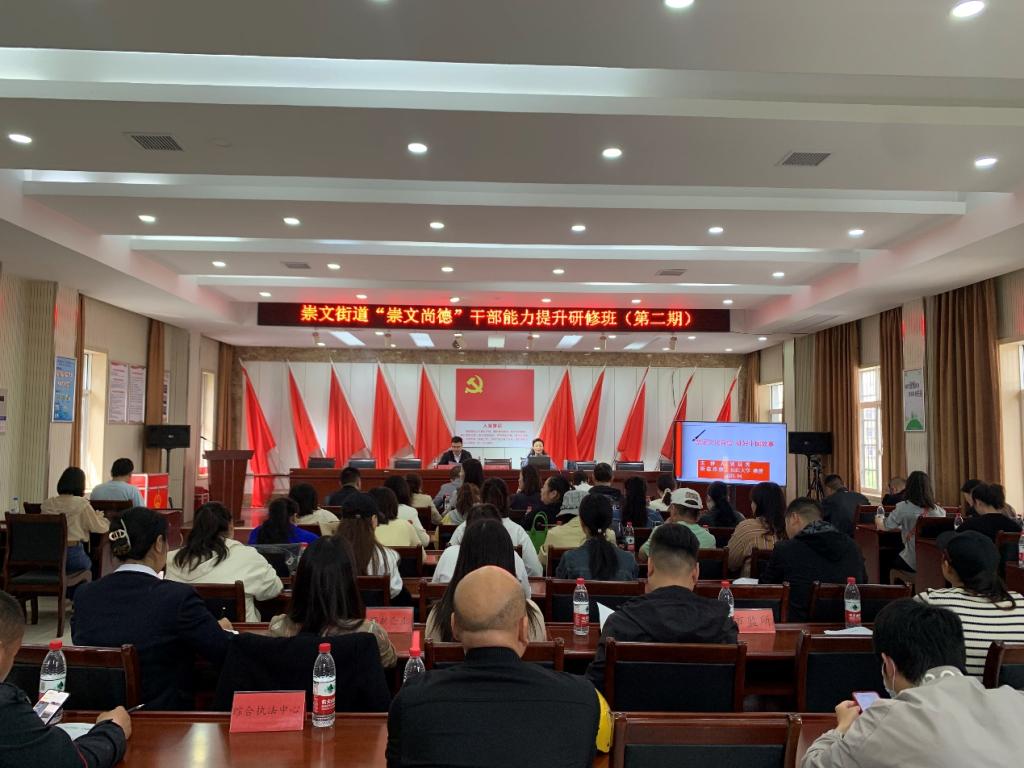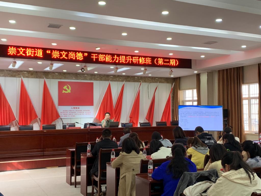 (通讯员 周思雨 谢蕾)4月14日,沙市区崇文街道“崇文尚德”干部能力提升研修班第二期在崇文街道办事处正式开讲,主讲人分别为8827太阳集团官网教授贾廷秀和人文与新媒体学院院长何世龙,沙市区崇文街道60余人参加了此次培训。