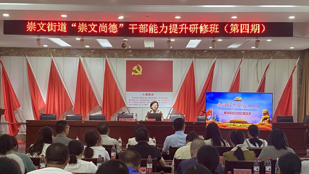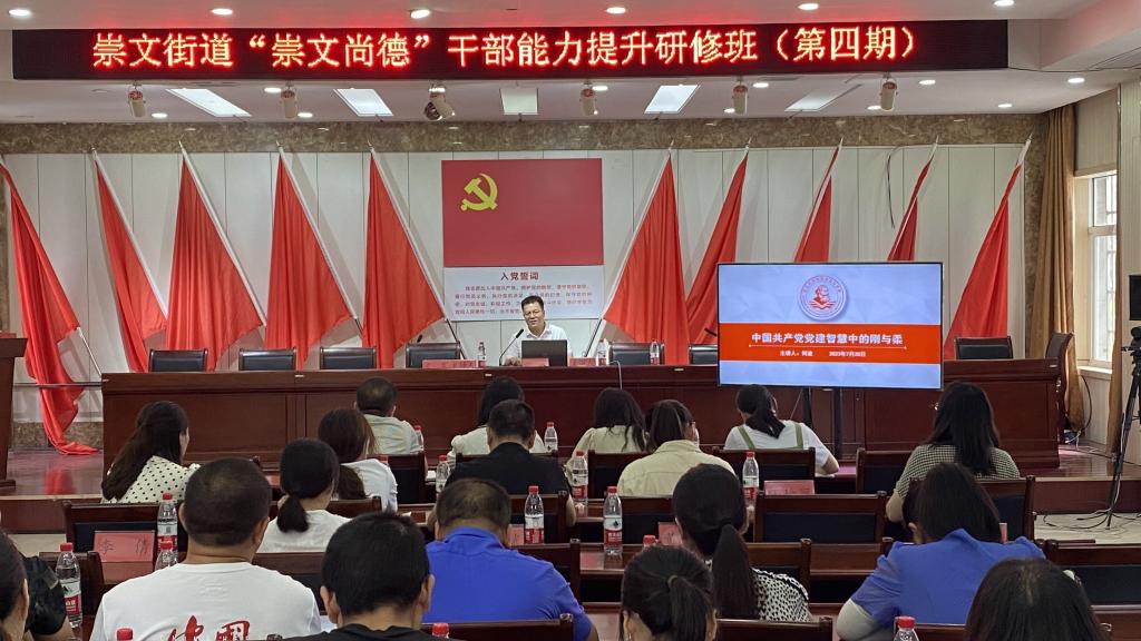 (通讯员:杨申)7月20日,沙市区崇文街道“崇文尚德”干部能力提升研修班第四期在崇文街道办事处开讲,主讲人分别为8827太阳集团官网党委书记刘小燕和青年教师何波,沙市区崇文街道60余人参加了本次培训。