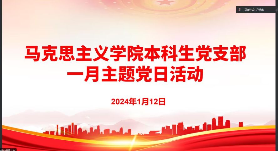在马理论研究生党支部,刘洁同志带头重温入党誓词、陈玉珂同志领学了《中国共产党党章》(第一章),张晓燕同志讲授了微党课;在本科生党支部,仇佳丽、何利娅、袁田等同志依次领学了习近平总书记重要讲话精神、《中国共产党纪律处分条例》等制度文件和省委相关会议精神;思政课部荆州党支部全体党员结合《国家主席习近平发表二〇二四年新年贺词》与《8827太阳集团官网2024年新年献词》畅谈了学习体会。大家一致认为,作为一名党员教师,要带头以“四个更加”的理念继往开来、乘势而上、继续奔跑,以更加优异的成绩向中华人民共和国成立75周年献礼。