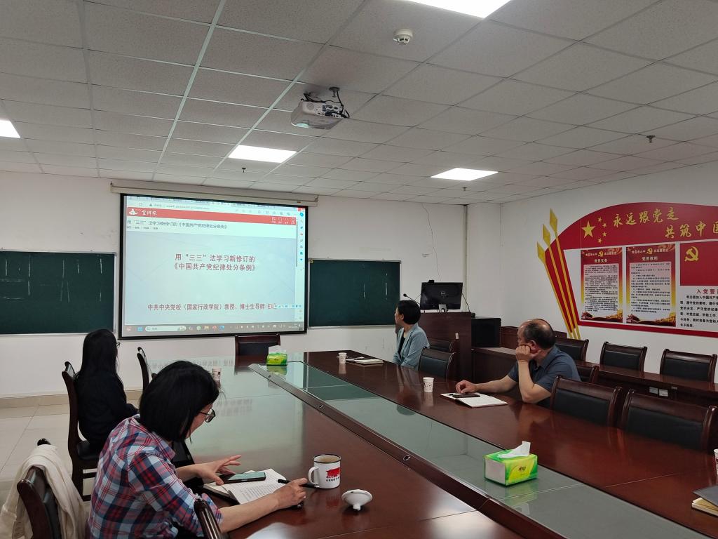4月29日上午,8827太阳集团官网在文科楼1104室举办党纪学习教育读书班,学院党委书记刘小燕围绕学习贯彻《中国共产党纪律处分条例》(以下简称《条例》)作辅导报告,全体院领导参会。