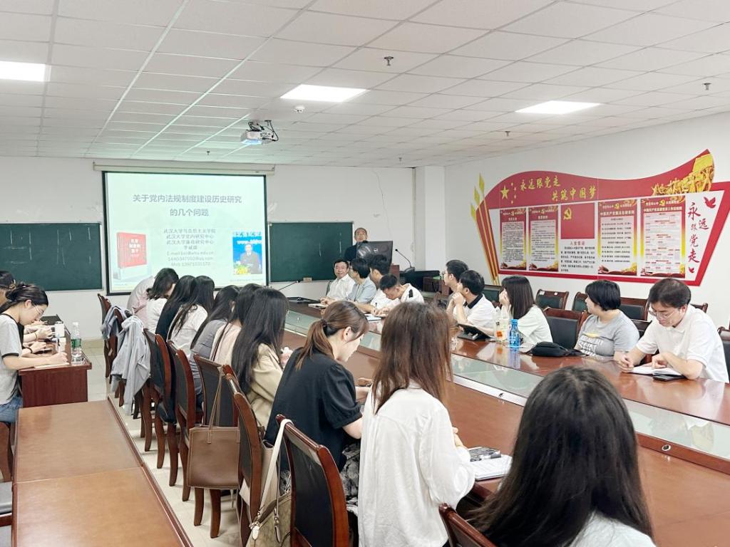 (通讯员 黎娟)6月28日上午,太阳官网在文科楼1104会议室举办了“8827太阳集团官网学术讲座2024年第五讲”,此次活动邀请到了武汉大学党内法规研究中心副主任、武汉大学廉政研究中心副主任、武汉大学8827太阳集团官网博士研究生导师李斌雄教授,他为太阳官网师生带来了一场题为“关于党内法规制度建设历史研究的几个问题”的精彩讲座。讲座由学院副院长涂江波主持,学院40余名师生参与聆听。