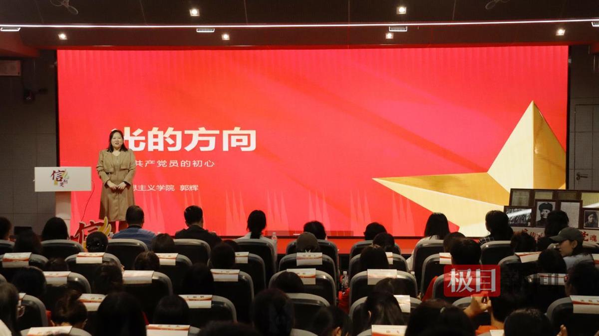 “生活当然也很困苦的,但现在生活困苦,决不是一人一家的问题,已经成为最大多数人类的问题(除极少数人以外)了。”思政课的序幕在托孤信的朗诵中缓缓拉开,郭辉深情讲述陈潭秋父子他们追随光、成为光、散发光的一生,以真实故事动人心魄,以真情流露感人肺腑,引起在场师生广泛共情共鸣。
