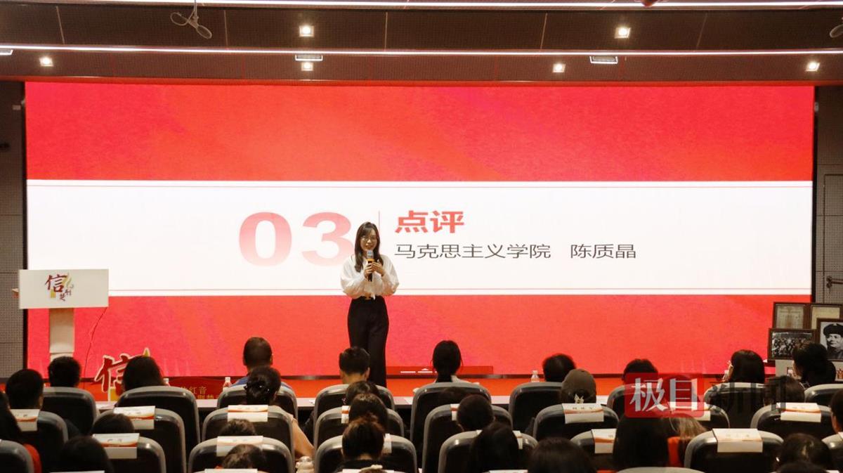 “陈潭秋、陈志远,他们的人生轨迹不同,生活时代不同,但初心使命依旧,这是父子之间光的传承,是中国共产党人初心的传承。骆群曙,在志愿服务中追随光、成为光、散发光,是对志愿服务初心的传承。整堂课用‘光’衔接,号召青年学子追寻信仰之光,勇担青春使命。”课程点评环节,陈质晶围绕主题“光的方向”进行点评。