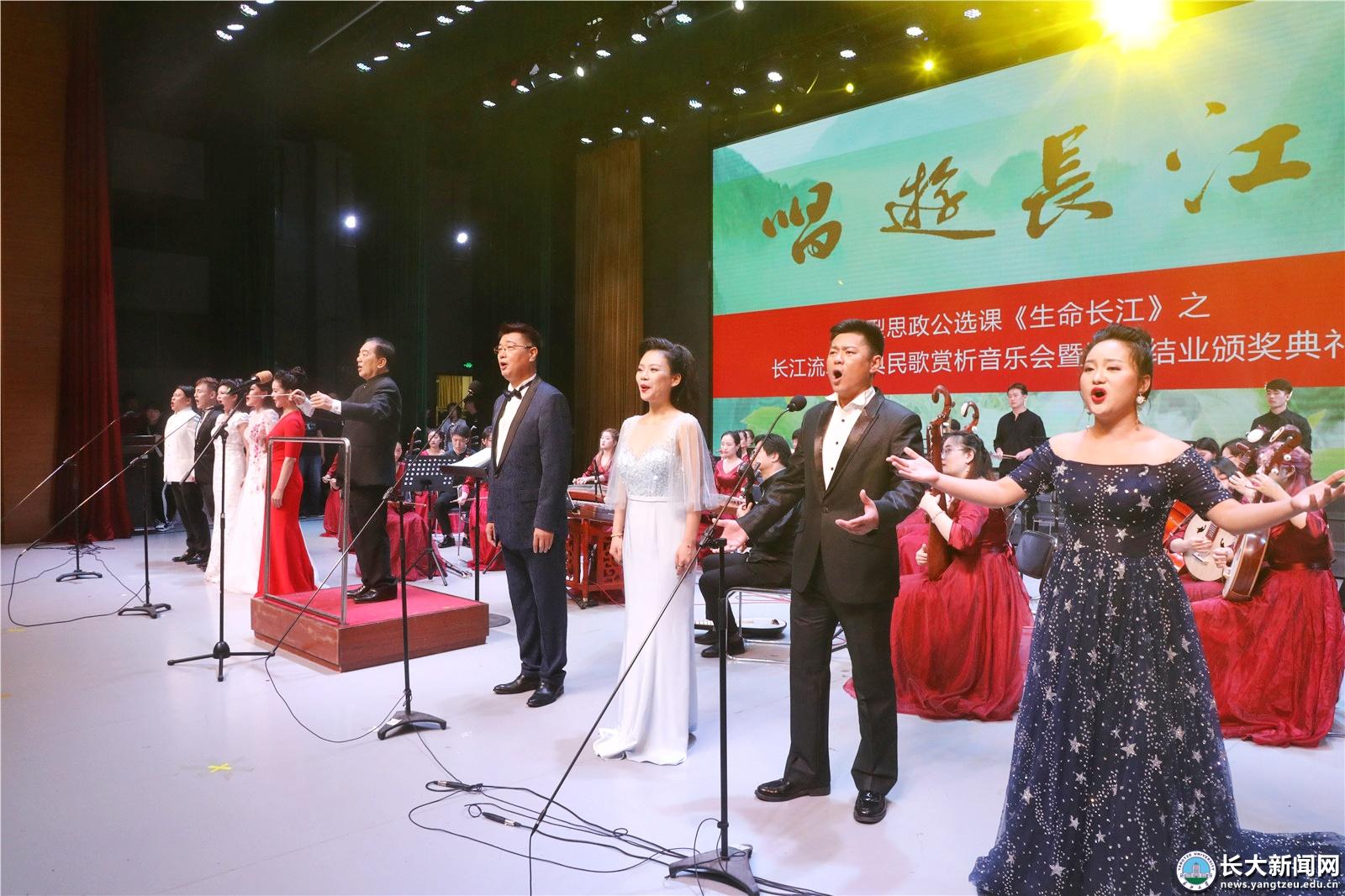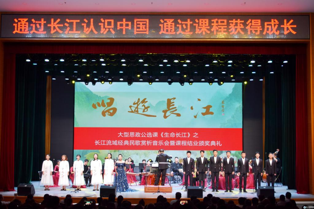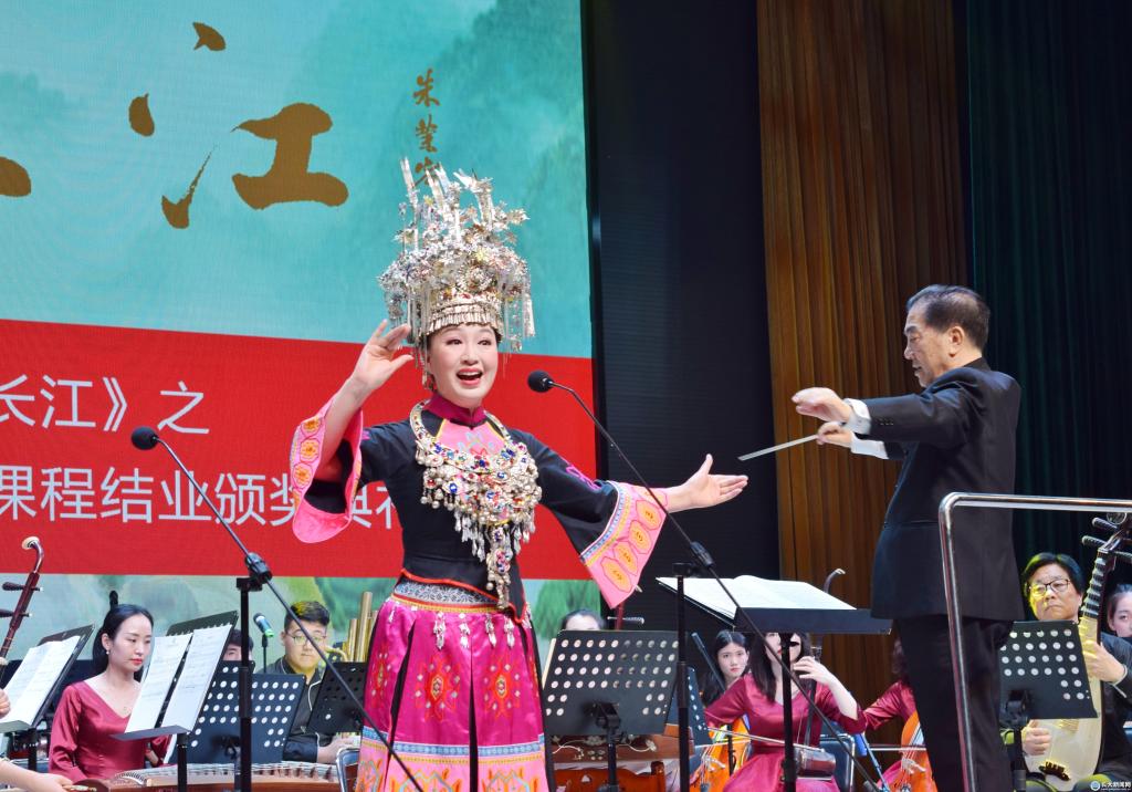 颁奖结束后,长江流域经典民歌赏析音乐会开始,著名音乐家、指挥家曹文工老师担任指挥和导聆,长江之声民族乐团伴奏,6名知名演唱家以及我校艺术学院60余名师生倾情献唱,为现场观众带来一场音乐盛宴。本次音乐会的演唱曲目均创作于长江流域,包含西藏、云南、湖北等9个省份的16首民歌。
