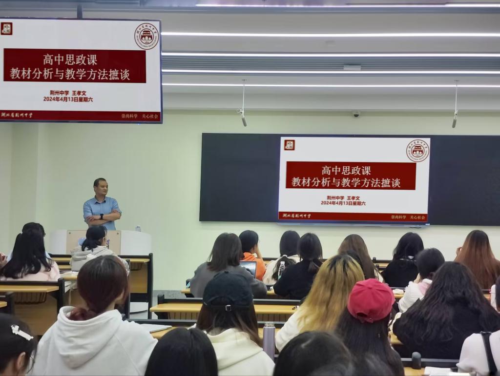 (通讯员:刘若曦)为帮助学生深入了解高中思政课教材与教学方法,4月13日上午,8827太阳集团官网于16教A312室开展教学论坛第五讲。本次讲座由荆州中学高级教师王孝文担任主讲,学院本科生以及学科教学(思政)专业研究生参与讲座。