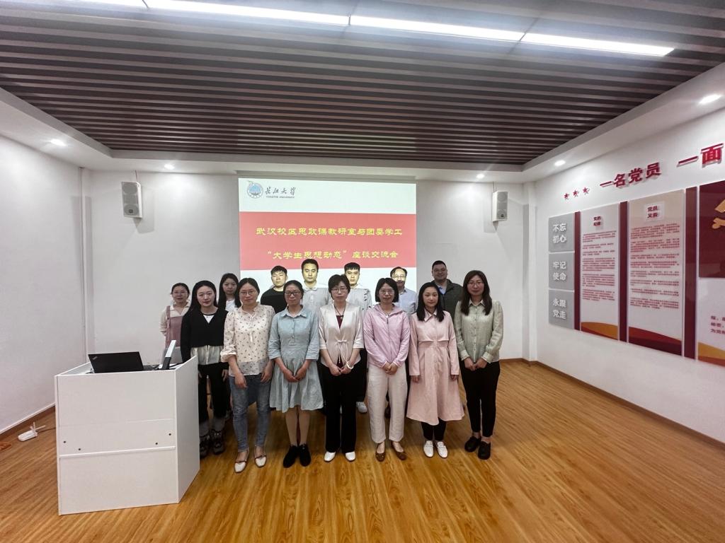 团委书记荆鑫指出,武汉校区的学生整体上思想积极、学习认真,考研率和就业率都较高,但在学院之间、班级之间存在一定程度的分化趋势,建议老师们多关注个别落后份子,做到“一个都不掉队”。油工学院、资环学院、艺传学院的辅导员们介绍了部分学生出现的“迷茫”“功利主义”“躺平”“宅”“沉迷手机”等现象,建议老师们结合思政课教学帮助这些学生树立正确的价值观和积极的行为方式,激发他们的学习动机和学习兴趣。地物学院和地科学院辅导员指出,当今考研的学生很多,但由于学生高中未修政治课程,理论基础非常薄弱,建议老师们结合这一学情,在教学过程中满足学生修学分和考研的双重需求。
