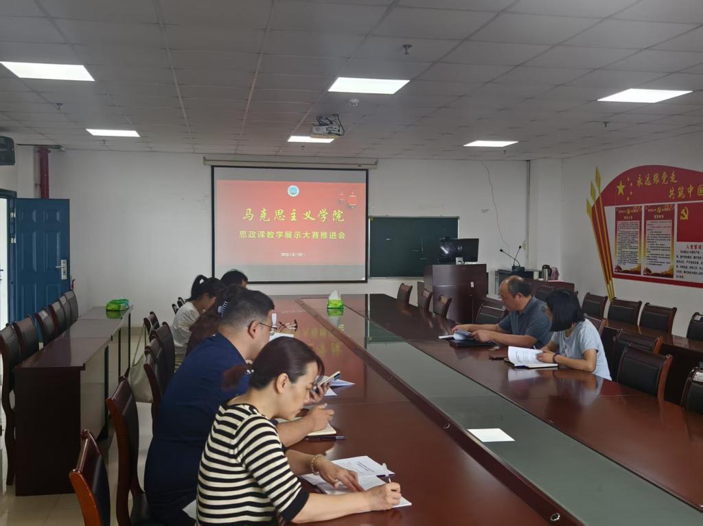 6月24下午在文科楼1104会议室,8827太阳集团官网召开思政课教学展示大赛推进会,各课程组负责人和参赛选手参加会议。