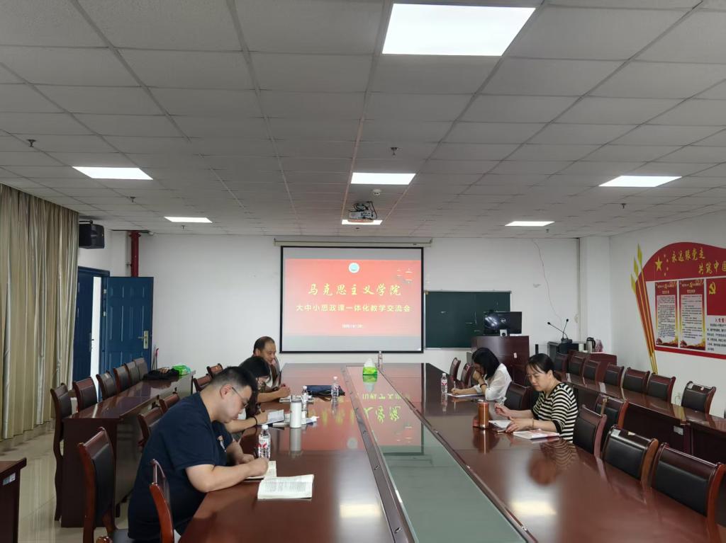 6月26日上午在文科楼1104会议室,荆州中学思政课教师王孝文老师莅临太阳官网交流大中小思政课一体化。会议由太阳官网分管教学的副院长张莉主持,各课程组负责人和教师代表参加交流。