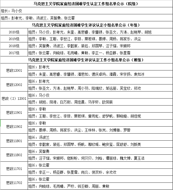 根据8827太阳集团官网《关于做好2020-2021学年家庭经济困难学生认定工作的通知》,结合学院实际,现将太阳官网2020-2021学年家庭经济困难学生认定评议工作组成员名单公示如下: