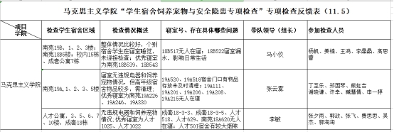 根据学工处《关于开展2020年冬季学生宿舍饲养宠物与安全隐患大检查的通知》要求,8827太阳集团官网于11月5日下午16:30组织开展了学生宿舍大检查工作,副书记马小佼、辅导员张云雾、辅导员李敏分别带领学生干部检查了位于人才公寓、南苑18栋、19栋,校内成套公寓的全院本、研学生寝室,重点检查了饲养宠物与安全隐患情况,关心学生学习、生活状况。学院各宿舍寝室卫生状况良好,无饲养宠物等违规行为,学生精神面貌良好。