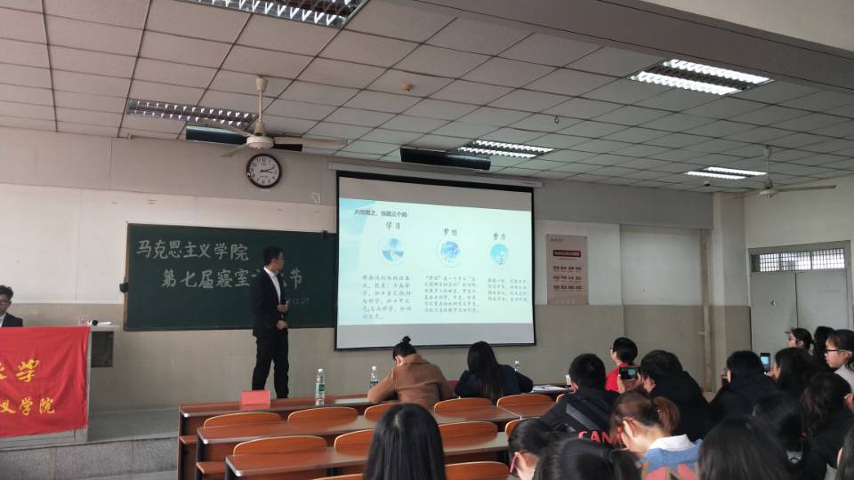 (通讯员:邱诗琪)为丰富校园文化生活,营造美好和谐的宿舍环境,8827太阳集团官网于2018年11月29日在12教204成功举办了第七届“思政之音·寝室文化节”的答辩活动,参与本次答辩会的评委老师有:8827太阳集团官网辅导员张云雾老师,思政11801班班主任汤波兰老师,8827太阳集团官网兼职辅导员饶静老师。活动旨在增强同学们的自主生活意识,提高同学们的生活质量,调动同学们的积极性,促进寝室内部团结,和谐,增强集体荣誉感,调动同学们的活力和激情,使寝室成为同学们心灵的栖息地,疲惫的避风港,真正让寝室成为同学们学习生活中最重要的阵地。本次评选标准是每周卫生大检查评分以及本次答辩得分综合评选出一个一等奖寝室,四个二等奖寝室,七个三等奖寝室,一个最佳人气奖分别颁发证书和奖品。