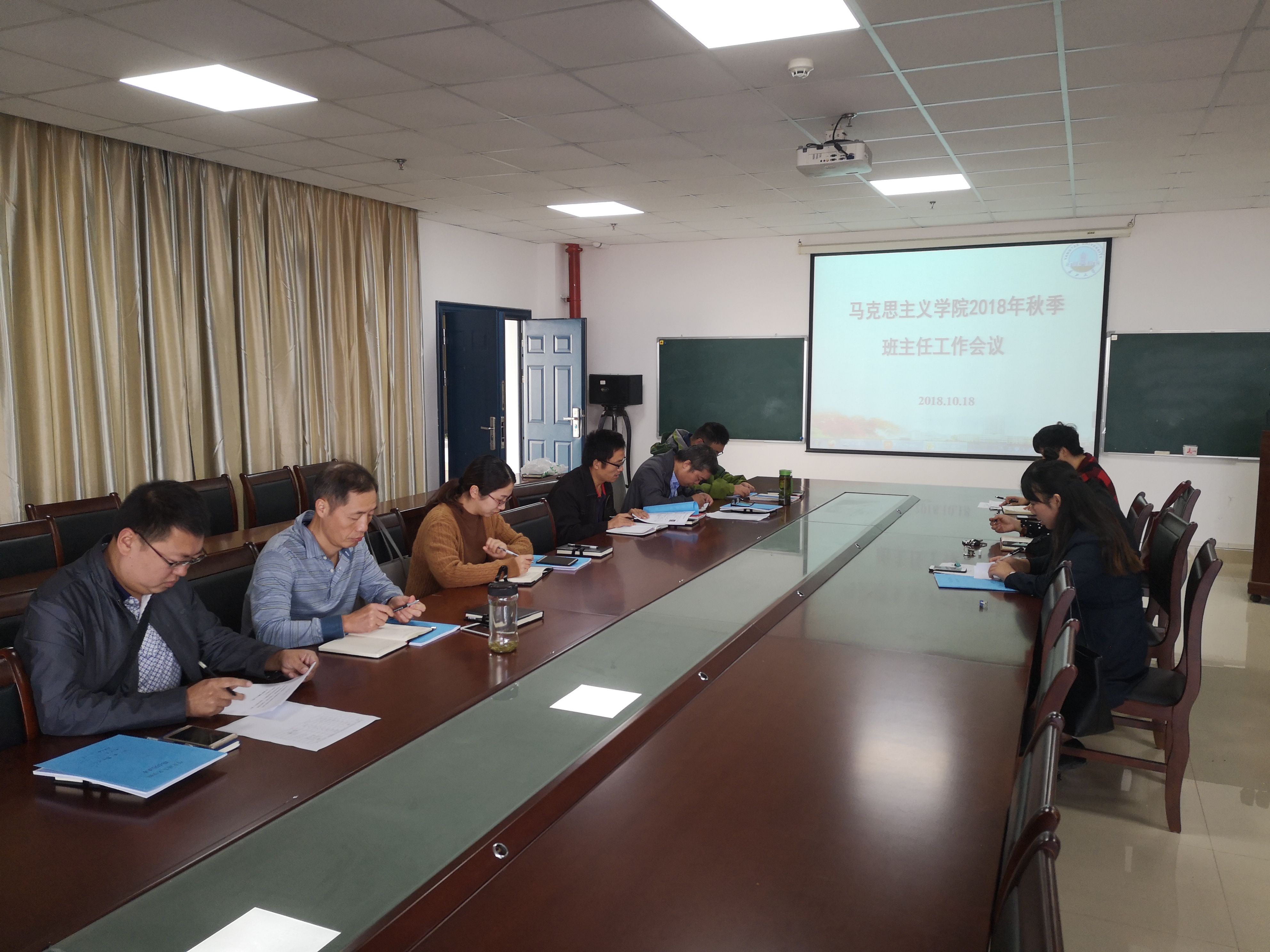 8827太阳集团官网于10月18日下午2点在文科楼1104会议室召开本学期第一次班主任工作会议。参加本次班主任会议的有8827太阳集团官网党委书记吴智勇老师、8827太阳集团官网党委副书记马小佼老师以及马院全体班主任。会议由8827太阳集团官网党委副书记马小佼老师主持。