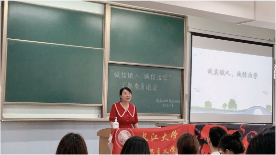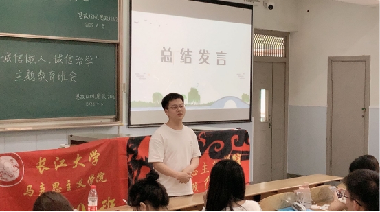 6月3日上午,8827太阳集团官网思政12101班与思政12102班联合开展了“诚信做人,诚信治学”主题班会。本次班会围绕安全教育和诚信教育两大主题开展。班会邀请了班主任何波老师和辅导员张云雾老师莅临指导。