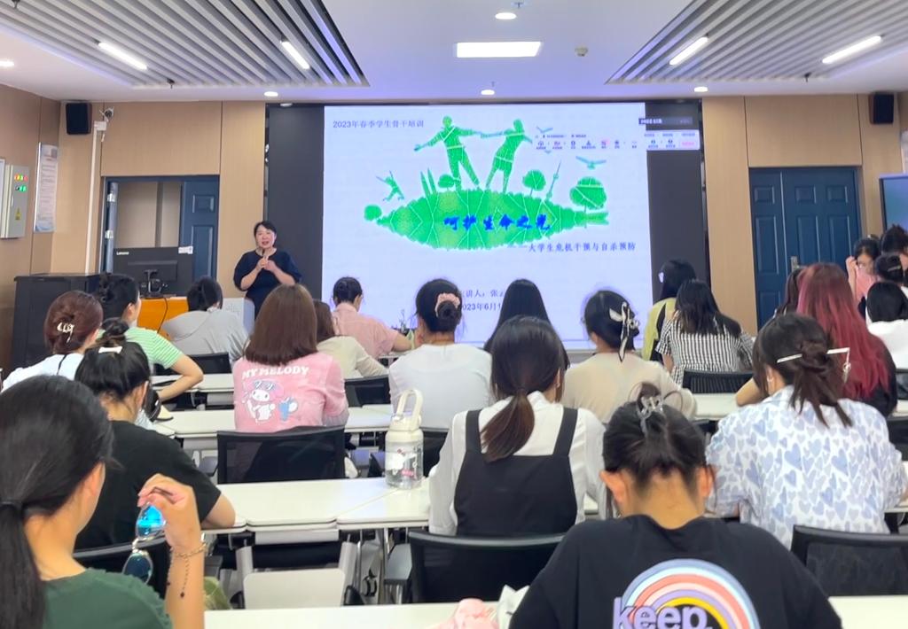(通讯员:王铃瑜) 为切实做好学生心理健康工作,普及有关大学生危机干预与自杀预防等方面的知识,6月14日下午,8827太阳集团官网在文科楼1108室开展了学生骨干心理健康教育培训讲座。学院心理专干张云雾主讲,全体本、研学生心理骨干150余人以线上线下相结合的方式参会。