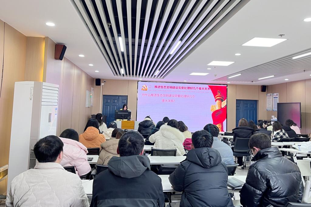 “如何有力有序有效推进生态文明建设?” 胡碧麟的提问,引发了同学们的关注与思考;随后,她从正确处理高质量发展和高水平保护的关系、重点攻坚和协同治理的关系、自然恢复和人工修复的关系、外部约束和内生动力关系、“双碳”承诺和自主行动的关系五个方面,对这一问题作了全面系统的解答。如何争做新时代高校“大先生”?围绕这一主题,储康华引领同学们结合实际展开了深入研讨。现场互动频繁,气氛活跃,同学们纷纷反映这样学习既“及时”又“解渴”,加深理论认识的同时也提升了个人思想境界。