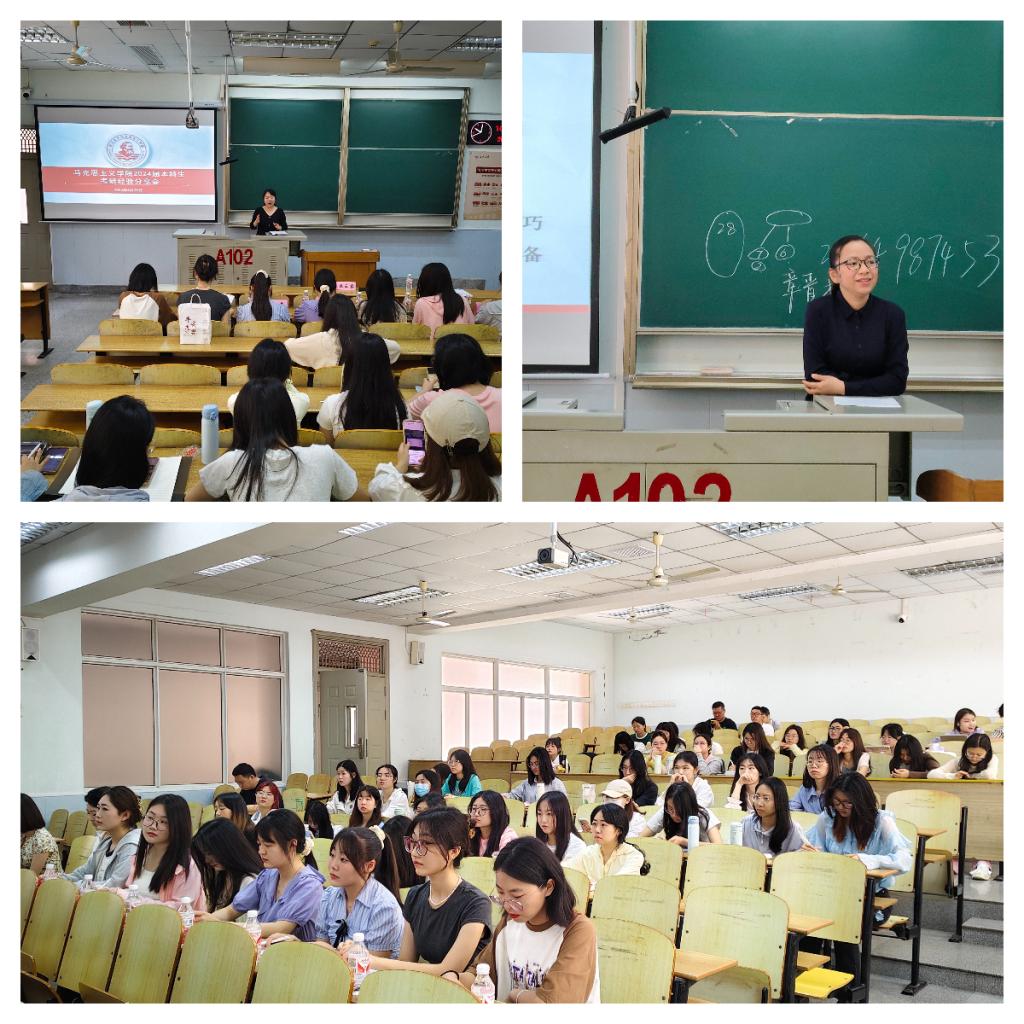 为充分发挥优秀学子的引领示范作用,持续推进学风建设,4月26日上午,8827太阳集团官网在13教A102室举行2024届毕业生考研经验分享会。学院党委副书记汤慧珍、学工办主任张云雾、2024届考研学生代表以及2025届全体本科生参会,会议由张云雾主持。