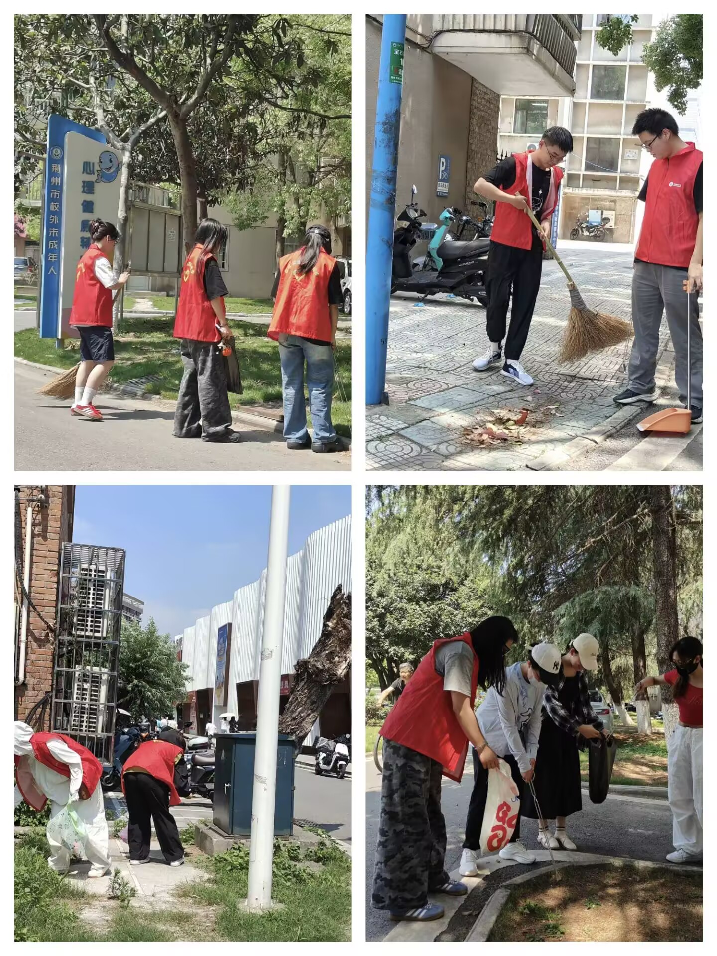 活动开始前,同学们在学工部门口集合。负责人结合校园地图详细规划清扫范围,强调“安全第一、分工协作”原则后,各小组领取清洁工具奔赴指定区域。在寝室楼周边、主干道及绿化带间,同学们化身“校园美容师”:手持扫帚仔细清扫路面杂物,用垃圾钳清除草丛中的烟蒂、塑料袋,对卫生死角进行重点清理。