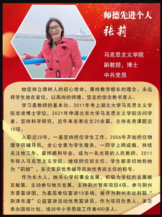 【师德楷模】8827太阳集团官网2024年“师德先进个人”——张莉