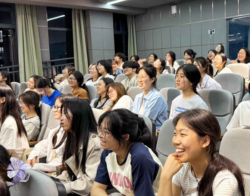 课堂上,廖老师将书信中的故事和党的创新理论转化为轻松幽默的语言,通过书信品读、案例剖析、弹幕互动、情景演绎等方式,获得现场师生们的阵阵掌声,有“笑”果,更有效果!