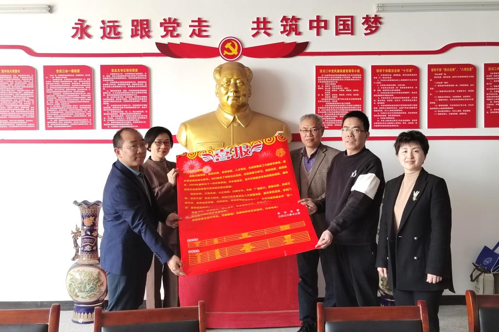 走访中,宣传小组与两校领导、年级主任和班主任进行了深入的探讨交流,对两校2022年报考我校情况做了报告,并送上喜报和纪念品。宣传小组还邀请两校参加第二届百位中学校长进长大活动。