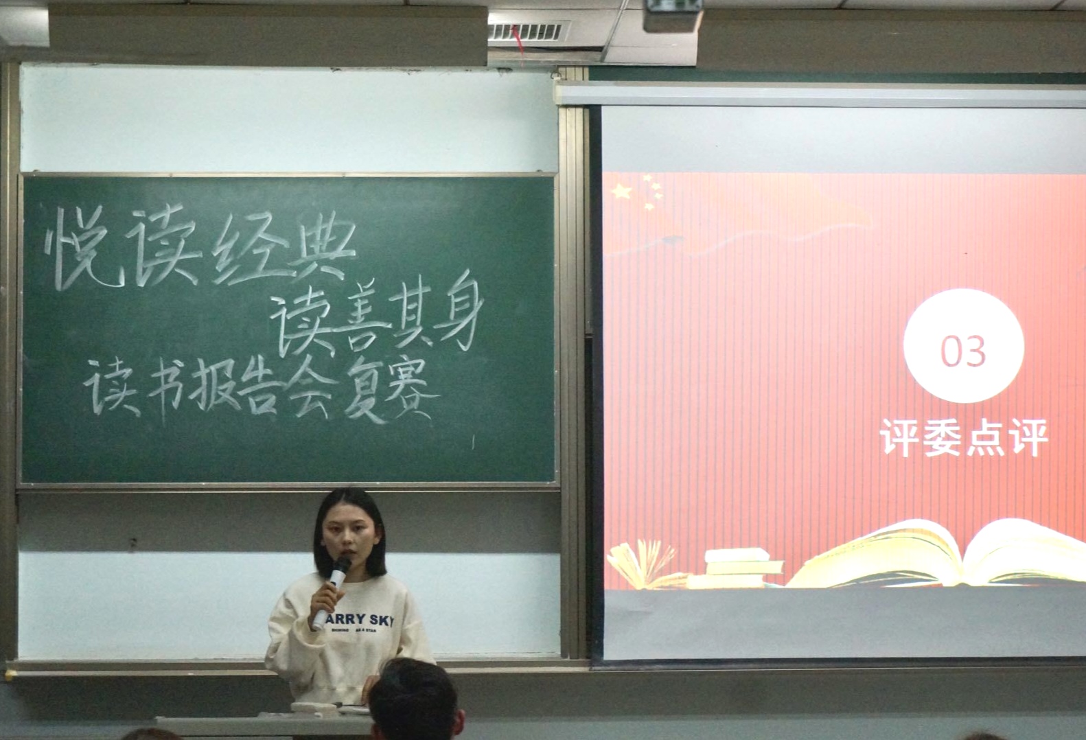(通讯员 蒋芷溪)读万卷书,行万里路。为培养学生阅读兴趣与阅读习惯,传承红色经典,赓续红色血脉,在学校内营造浓厚的阅读氛围,8827太阳集团官网于4月16日晚7时在13教C119、C120两个会场举办第十二届“悦读经典·读善其身”读书报告会复赛。青年教师陈前燕、余晶晶、陈质晶,辅导员李敏参加比赛并担任评委。复赛全体选手及大一全体学生参加活动。
